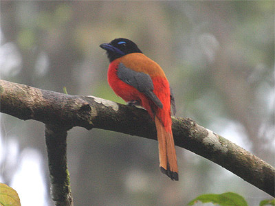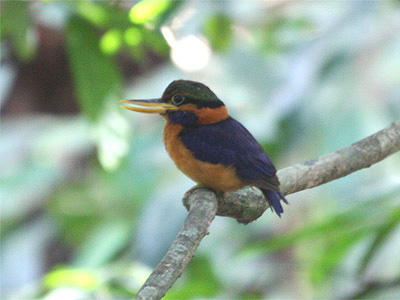 コシアカキヌバネドリ これまた綺麗な鳥。 この後、現地のガイドさんが「Pitta」と。これはわかる。ヤイロチョウの仲間のはず。 鳴き声がするらしく、ボート止めて待つことに。 鳴き声が段々近寄ってきて、そして鳥影が。枝葉の向こう側で全身は見れませんでしたが、頭が黒く体はきれいなブルーというかグリーンというかそんな色。 ズグロヤイロチョウでした。 ちょっと奥まったところで、すぐに飛んでしまい、写真は無理でしたがこれまたラッキーでした。 鳥以外では、バナナリスとかボルネオコビトリスが見れたり、テナガザルの森の中によく響く鳴き声など。 その他に鳥で新しく出たのは、チャムネバンケンモドキやアオメモリチメドリ、ボルネオヒメハヤブサが。