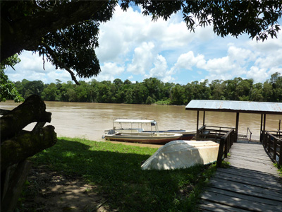 ボートに乗って数分で、到着。 夕方からリバークルーズがあるので、休憩とロッジ周辺を散策。 ウォーレスクマタカが敷地内で営巣してるうようでした。