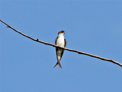 カワリサンコウチョウ 現地のガイドさんもカメラ取り出して写真撮ってました(笑) 十分にその姿を見せてくれたたあとに、緑に潜っていきました。 その後も、クロエリヒタキ、クロアカヒロハシやクビワヒロハシ、サイチョウ類も何種か。 朝食のため、ロッジに戻る際にはカンムリアマツバメが見やすいところに。