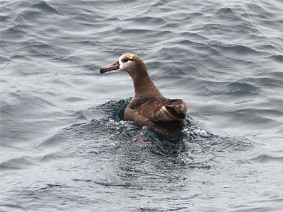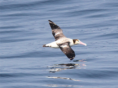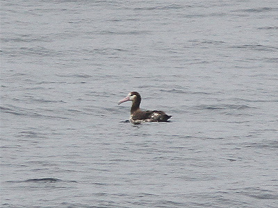 そして、あまり鳥の種類にあまり代わり映えがなく数時間たったお昼ごろ、 クロアシアホウドリの群れに紛れて顔が白っぽい鳥が。