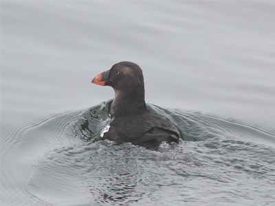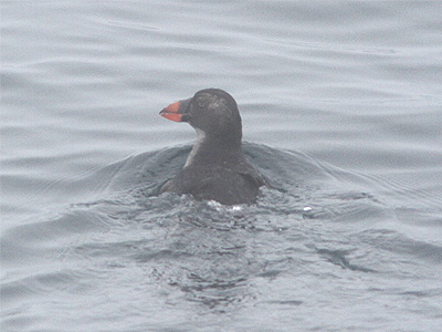 なんとこんな時期ですが、ハジロミズナギドリでした。 船のまわりを遠巻きに飛び回っていました。 以前、苫小牧航路でじっくり見れていますが、今回のもじっくり見ることが出来ました。 霧の中だったのは残念でしたが良いものが見れました。 願いが通じたかどうかは謎ですが、午後になり、霧も晴れてきました。 そんな中、エトピリカやウミツバメも何度も姿を見せてくれました。今回のクルーズでは、エトピリカの 若鳥が多かったのですが、きれいな個体もかなり近くでみることが出来ました。