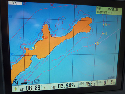 左足に白で3桁「225」 ちょっとWebで調べてみましたが情報が古くて、判明せず。ちなみに場所は、おおよそ色丹島沖の海上でした。 その後、霧が濃いながらもエトピリカやフルマカモメ、ウミツバメ類などを観察しつつ終了。 海獣もイシイルカやカマイルカ、キタオットセイやら。 1日で見れるべきものの大半は、とりあえず出た感じです。 翌日、択捉島沖の東端から南に20数キロ南の沖に到達。