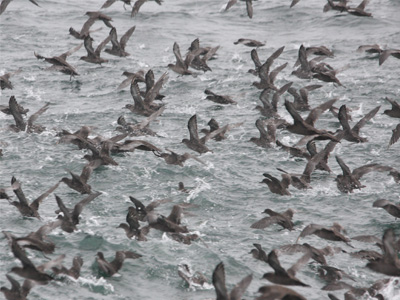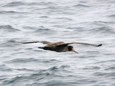 17時半位で天気もよくないこともあり、暗くなってきたので終了。 翌日は4時から。起きると数十羽のフルマカモメが船の周りに。 なんか動きがかわいい。普通にみてたらフルマカモメをかわいいだなんて思わないなぁと 思いつつ。 霧が濃く、あまり先が見えるような状態ではなかったのが残念。 6時に朝食。食べ終わった後、船尾で鳥を見ていたら、船の周りにあつまるフルマカモメ、 コアホウドリ、クロアシアホウドリに混じってアホウドリが・・・。