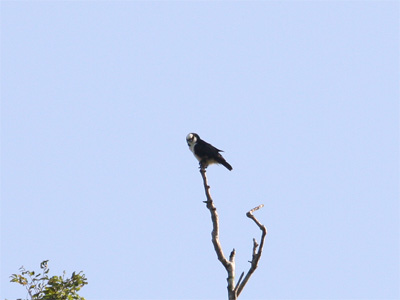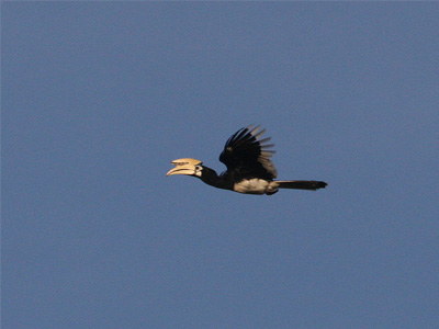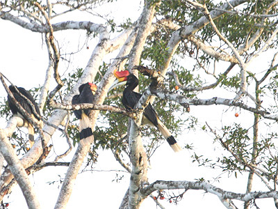 ちょうどそのときから雨が本降りに。これが噂のスコール!っていう感じに。 大雨の中でしたが、結構間近に見ることができて感動。 その後、しばらく排水作業などしていると雨もやみ、クルーズ再開。 濡れた羽を乾かしているのか、鳥が枝先に止まって見やすい感じに。夕方で少し暗いのは残念ですが、猛禽やハチクイなど。 そしてサイチョウ類が。 キタカササギサイチョウ、クロサイチョウ、ズグロサイチョウ、そしてサイチョウが。