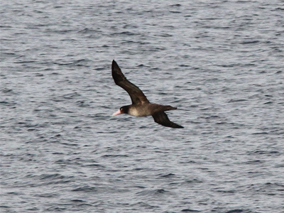 前回の9月に乗って以来の苫小牧航路に。 往路 11月だけあって、9月に比べると鳥がかなり多く、 特にコアホウドリとトウゾクカモメはかなりの数でした。ミツユビカモメもかなりの数いましたが、もっと多くてもと思うくらい の数でした。 ミズナギドリはオオミズナギドリに混じって少しのアカアシミズナギドリ とハシボソミズナギドリ。そしてミナミオナガミズナギドリが2回。 フルマカモメは10位。 15時過ぎオオミズナギドリの中からミナミオナガいないか探している時、 船の近くに船首の方から黒い大きいのが。