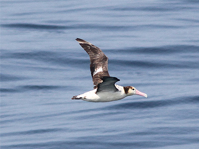 そして、あまり鳥の種類にあまり代わり映えがなく数時間たったお昼ごろ、 クロアシアホウドリの群れに紛れて顔が白っぽい鳥が。