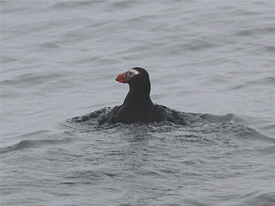 なんとこんな時期ですが、ハジロミズナギドリでした。 船のまわりを遠巻きに飛び回っていました。 以前、苫小牧航路でじっくり見れていますが、今回のもじっくり見ることが出来ました。 霧の中だったのは残念でしたが良いものが見れました。 願いが通じたかどうかは謎ですが、午後になり、霧も晴れてきました。 そんな中、エトピリカやウミツバメも何度も姿を見せてくれました。今回のクルーズでは、エトピリカの 若鳥が多かったのですが、きれいな個体もかなり近くでみることが出来ました。