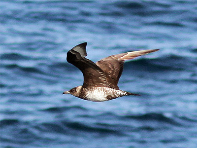 3ヶ月ぶりに苫小牧航路に。 日の出は5時30分ということで、朝は5時30分から。 朝焼けでオオミズナギドリが赤くみえるなか、確認できたのは、オオミズナギドリ 以外ではヒレアシシギとウミネコ、オオセグロカモメのみ。 予想通りというかなんというか、やっぱり鳥が少ない。 台風で心配していた海の状態もたいしたことはなかったのですが、 海面は波打っていて、天気が良いために青が良く映えていて鳥を見つけにくい。 12時過ぎ、変わり映えのなさに気を抜いていたところの目の前を黒い影。 肉眼でも顔が白いのが分かった。 ハジロミズナギドリその後も単発で、トウゾクカモメやクロアシアホウドリ、コアホウドリなどもがパラパラと。