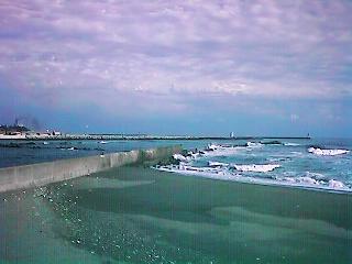 大洗経由の涸沼のコースで見に行った。大洗の海にはサーファーが結構いた。